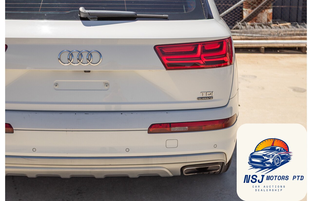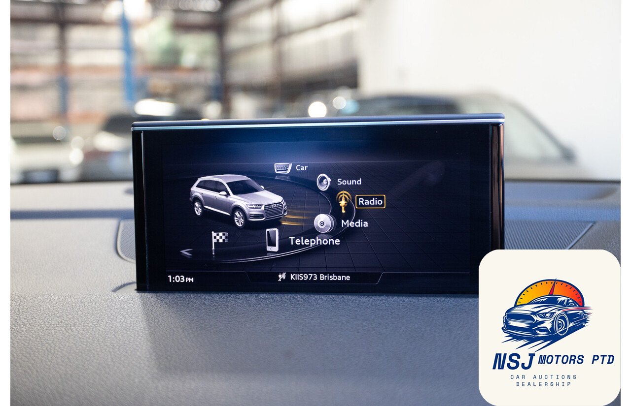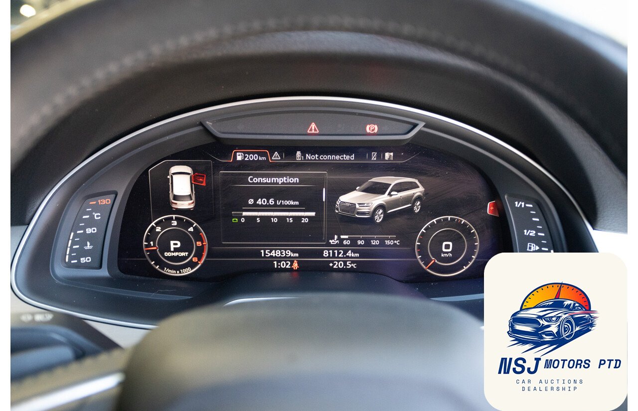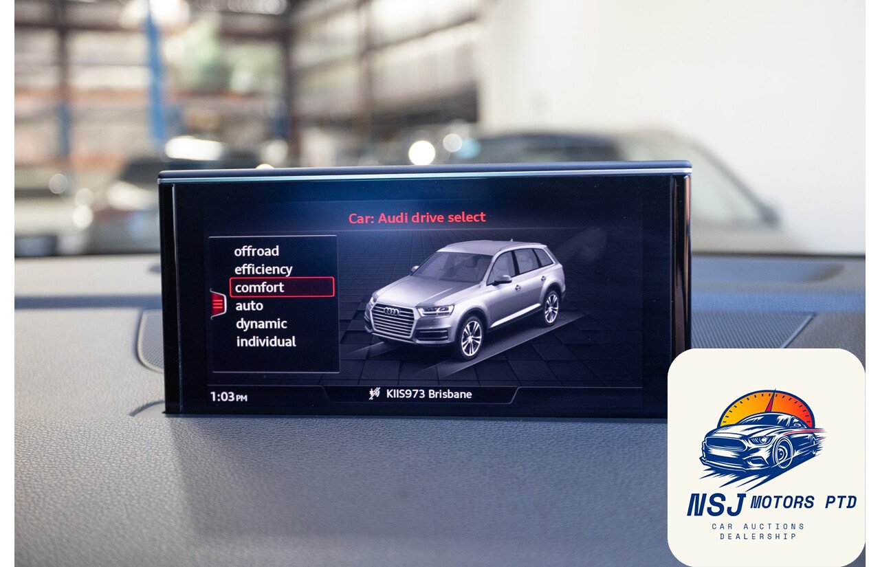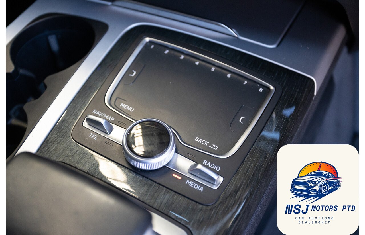 This feature equipped and luxurious V6 turbo diesel powered Audi Q7 has travelled 154,839ks since new and has partial service history. Some of the many features include Automatic sensing lights, bi-xenon headlights, LED daytime running lights, headlight washers, front and rear parking sensors, 19” alloy wheels, roof rails, power tailgate, power rear row seats, black leather upholstery, woodgrain interior inserts, 4 zone climate control, heated power front seats, power windows and folding mirrors, multi function leather steering wheel with paddle shift, voice command, Bluetooth mobile phone connectivity, rain sensing wipers, adaptive cruise control, adaptive driving modes, automatic parking brake, satellite navigation, reverse camera with 360 satellite view, forward collision warning, blind spot sensor and more.