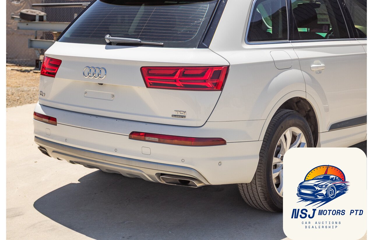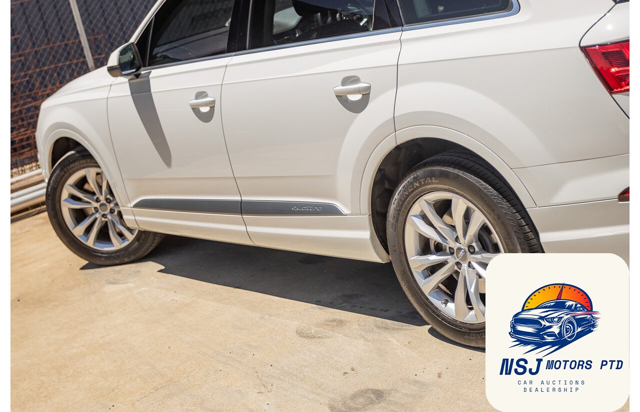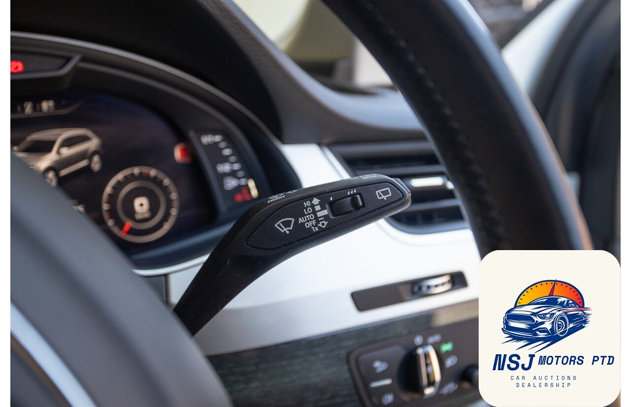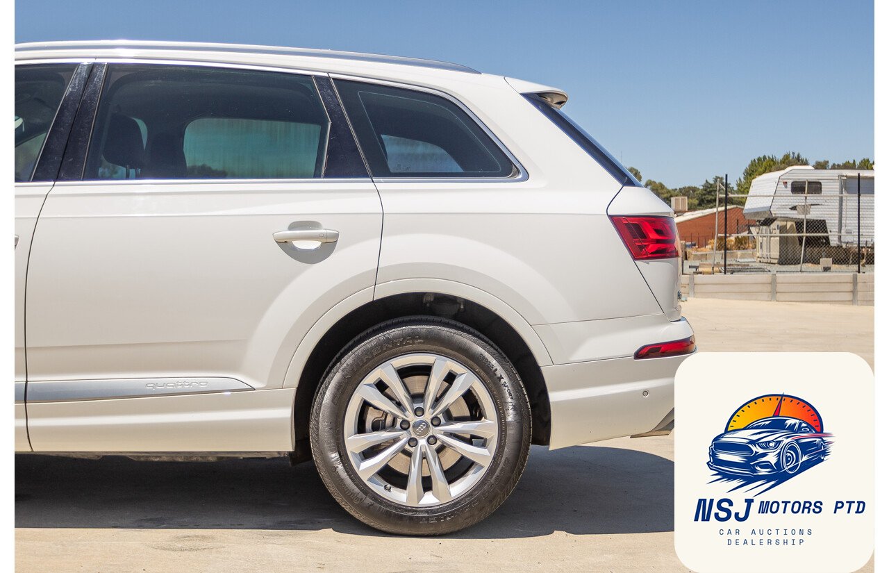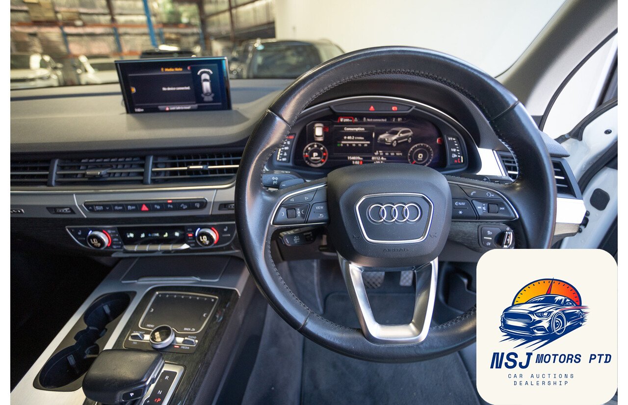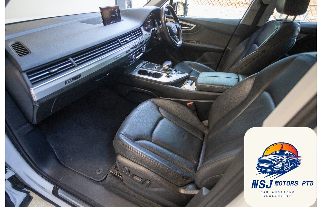This feature equipped and luxurious V6 turbo diesel powered Audi Q7 has travelled 154,839ks since new and has partial service history. Some of the many features include Automatic sensing lights, bi-xenon headlights, LED daytime running lights, headlight washers, front and rear parking sensors, 19” alloy wheels, roof rails, power tailgate, power rear row seats, black leather upholstery, woodgrain interior inserts, 4 zone climate control, heated power front seats, power windows and folding mirrors, multi function leather steering wheel with paddle shift, voice command, Bluetooth mobile phone connectivity, rain sensing wipers, adaptive cruise control, adaptive driving modes, automatic parking brake, satellite navigation, reverse camera with 360 satellite view, forward collision warning, blind spot sensor and more.
