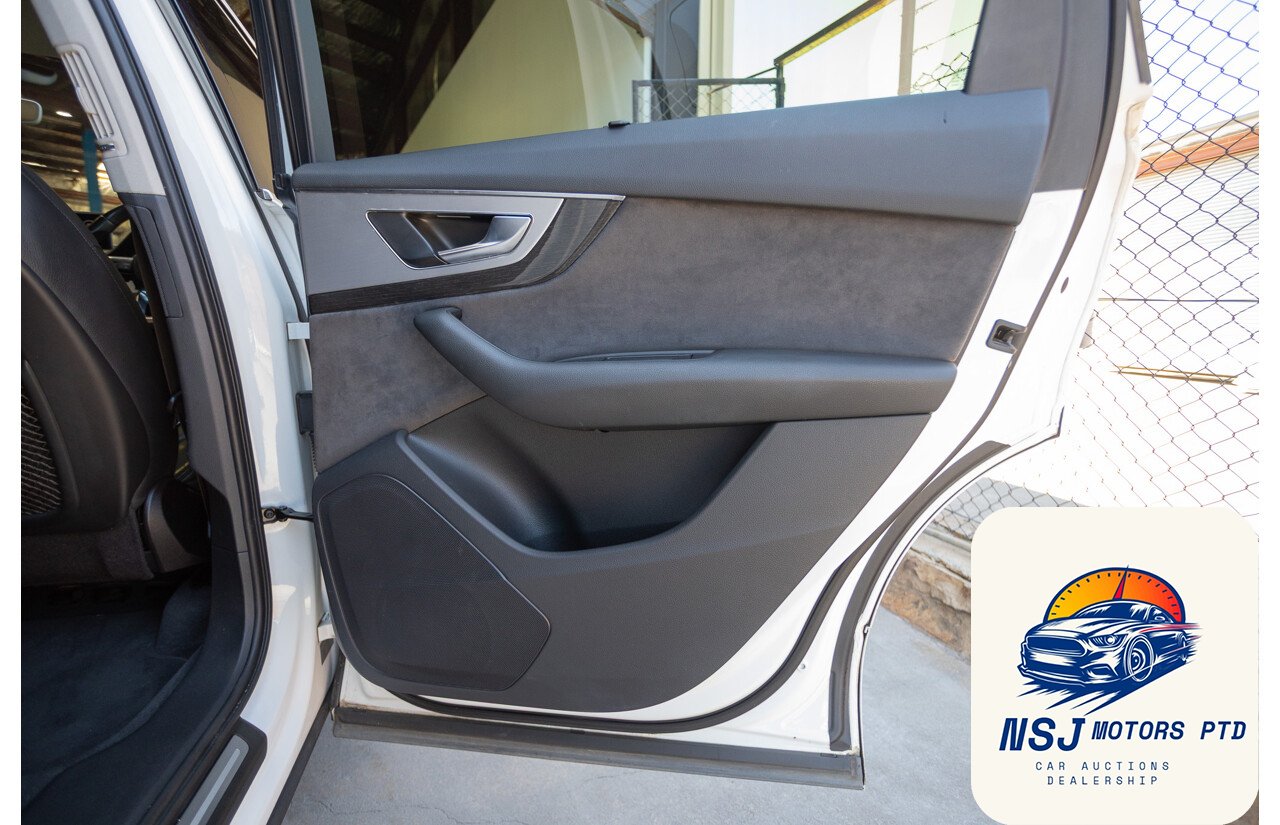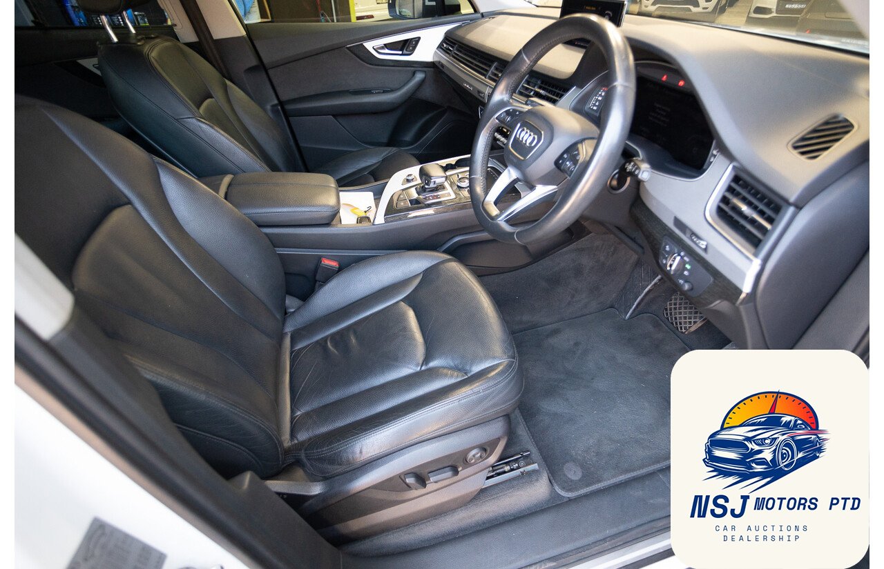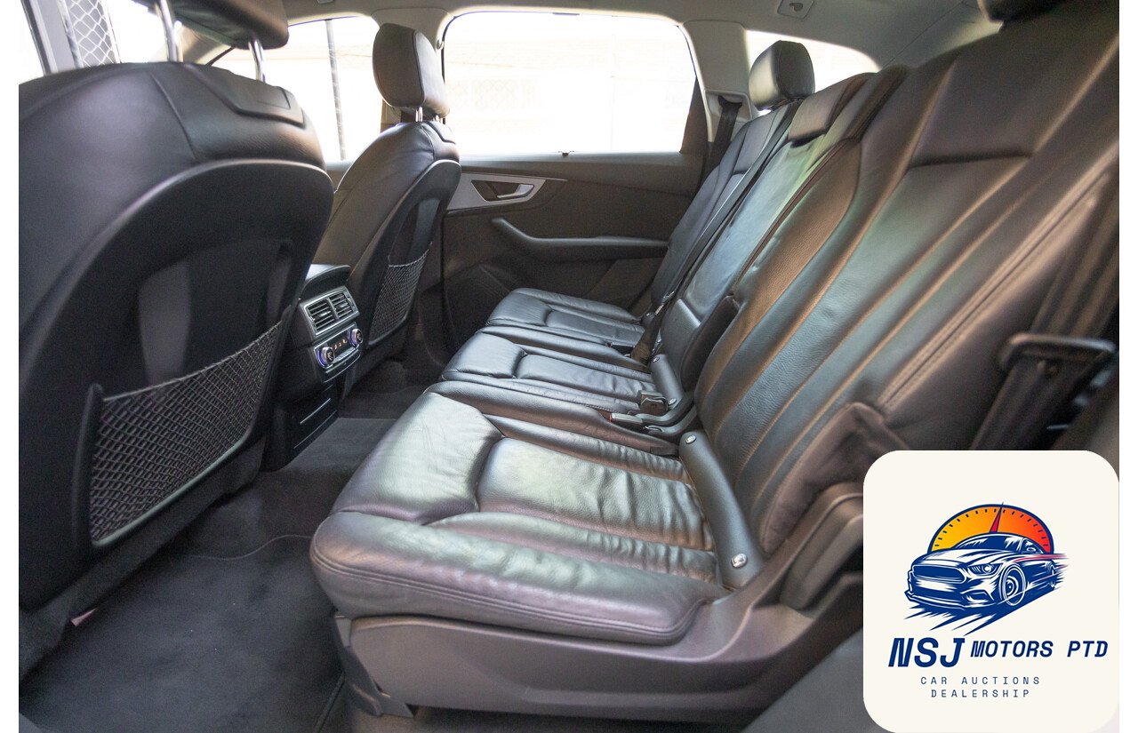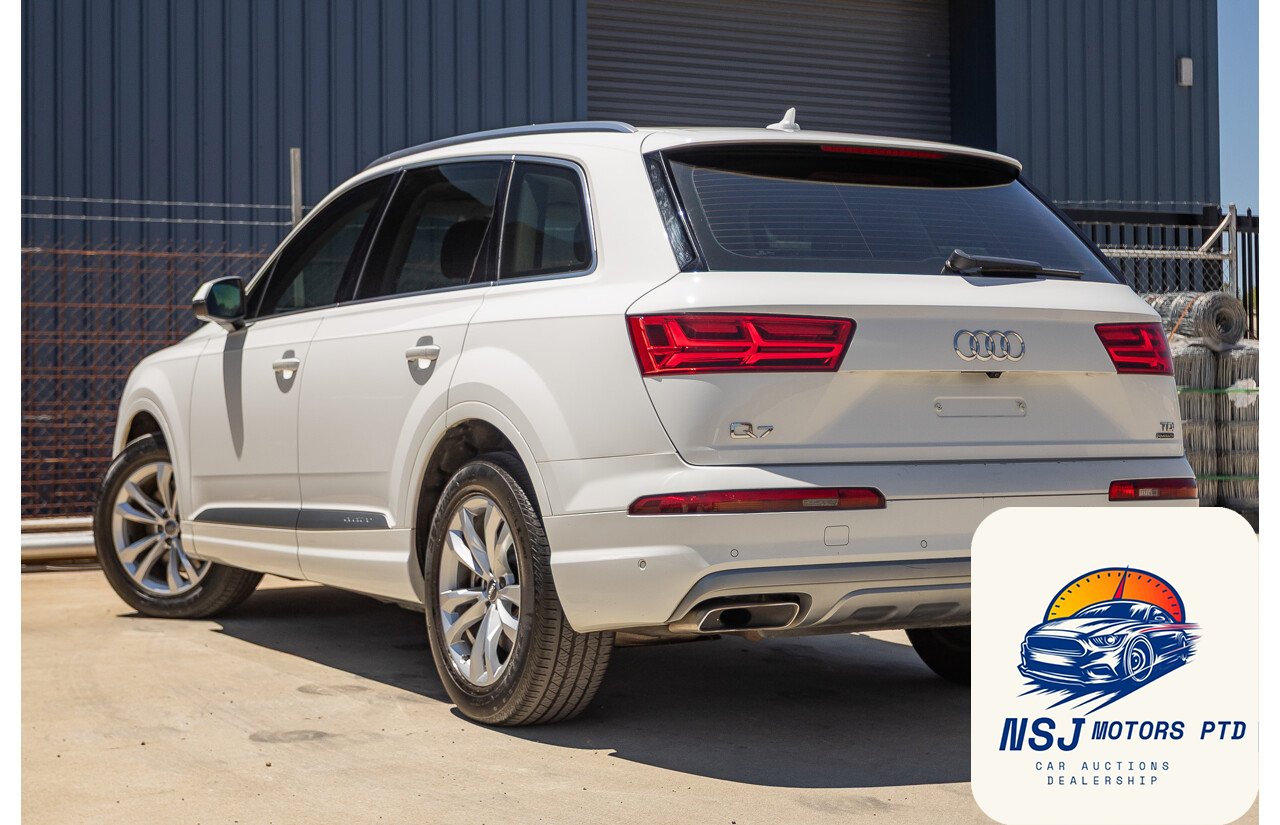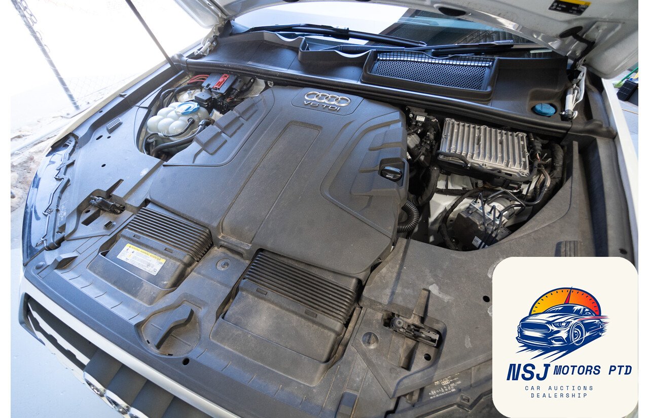 This feature equipped and luxurious V6 turbo diesel powered Audi Q7 has travelled 154,839ks since new and has partial service history. Some of the many features include Automatic sensing lights, bi-xenon headlights, LED daytime running lights, headlight washers, front and rear parking sensors, 19” alloy wheels, roof rails, power tailgate, power rear row seats, black leather upholstery, woodgrain interior inserts, 4 zone climate control, heated power front seats, power windows and folding mirrors, multi function leather steering wheel with paddle shift, voice command, Bluetooth mobile phone connectivity, rain sensing wipers, adaptive cruise control, adaptive driving modes, automatic parking brake, satellite navigation, reverse camera with 360 satellite view, forward collision warning, blind spot sensor and more.