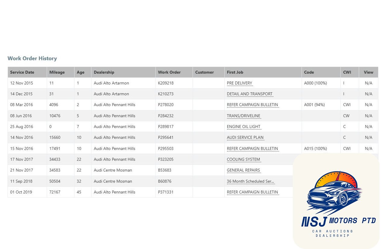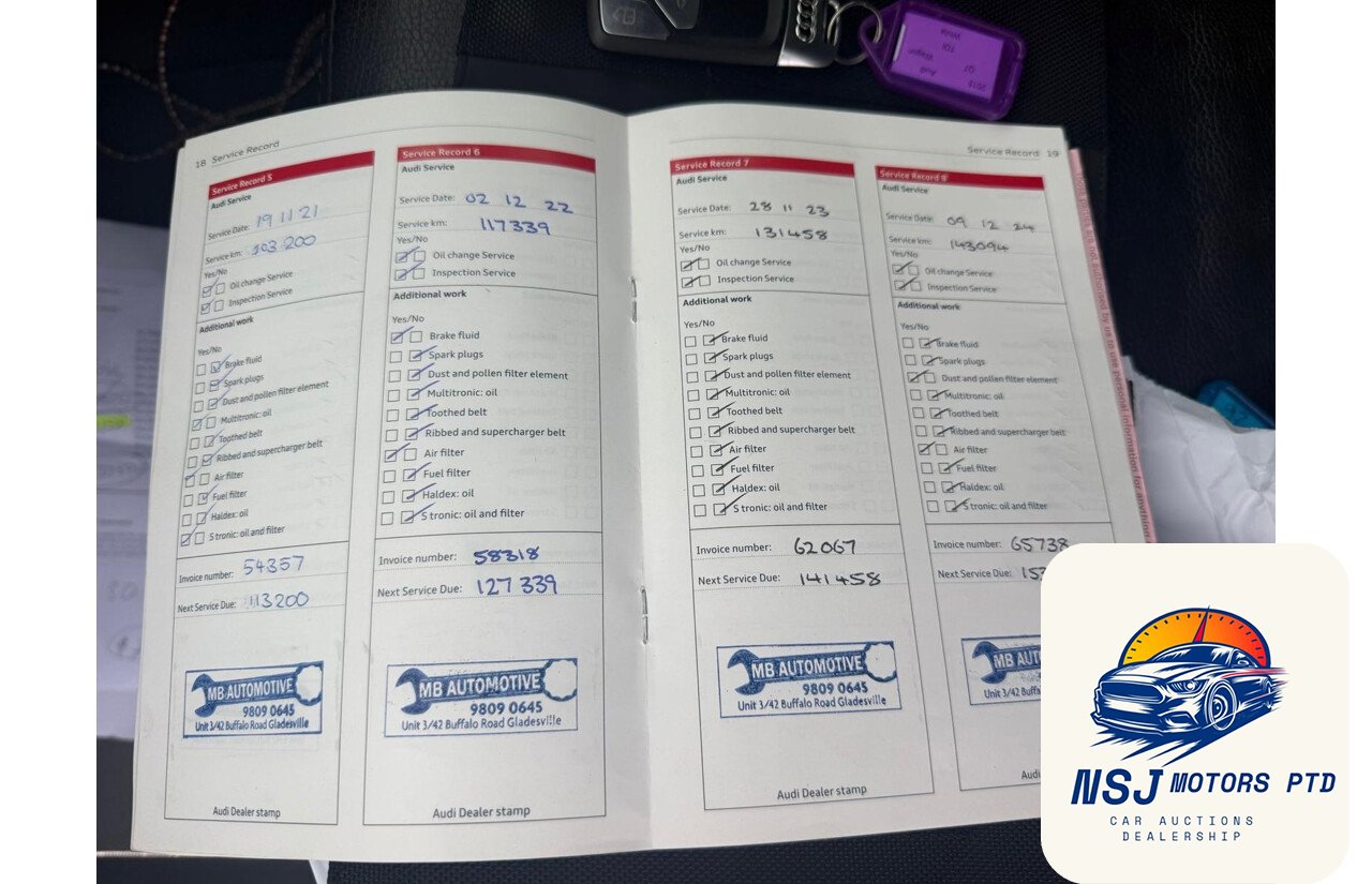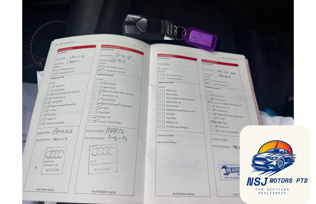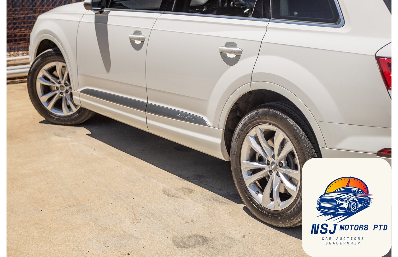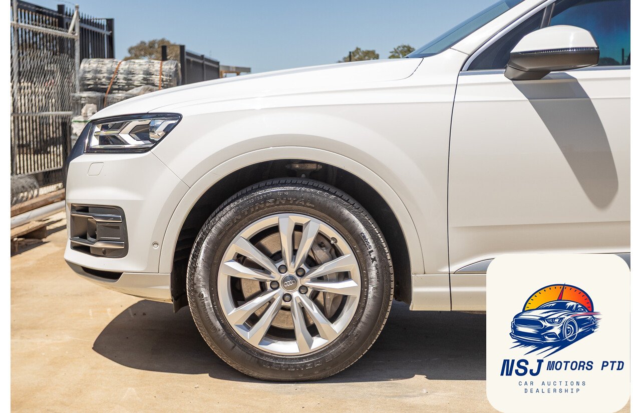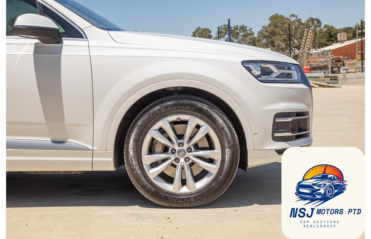 This feature equipped and luxurious V6 turbo diesel powered Audi Q7 has travelled 154,839ks since new and has partial service history. Some of the many features include Automatic sensing lights, bi-xenon headlights, LED daytime running lights, headlight washers, front and rear parking sensors, 19” alloy wheels, roof rails, power tailgate, power rear row seats, black leather upholstery, woodgrain interior inserts, 4 zone climate control, heated power front seats, power windows and folding mirrors, multi function leather steering wheel with paddle shift, voice command, Bluetooth mobile phone connectivity, rain sensing wipers, adaptive cruise control, adaptive driving modes, automatic parking brake, satellite navigation, reverse camera with 360 satellite view, forward collision warning, blind spot sensor and more.