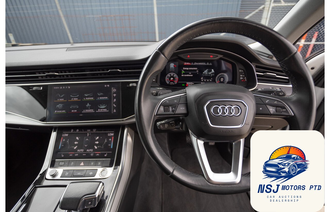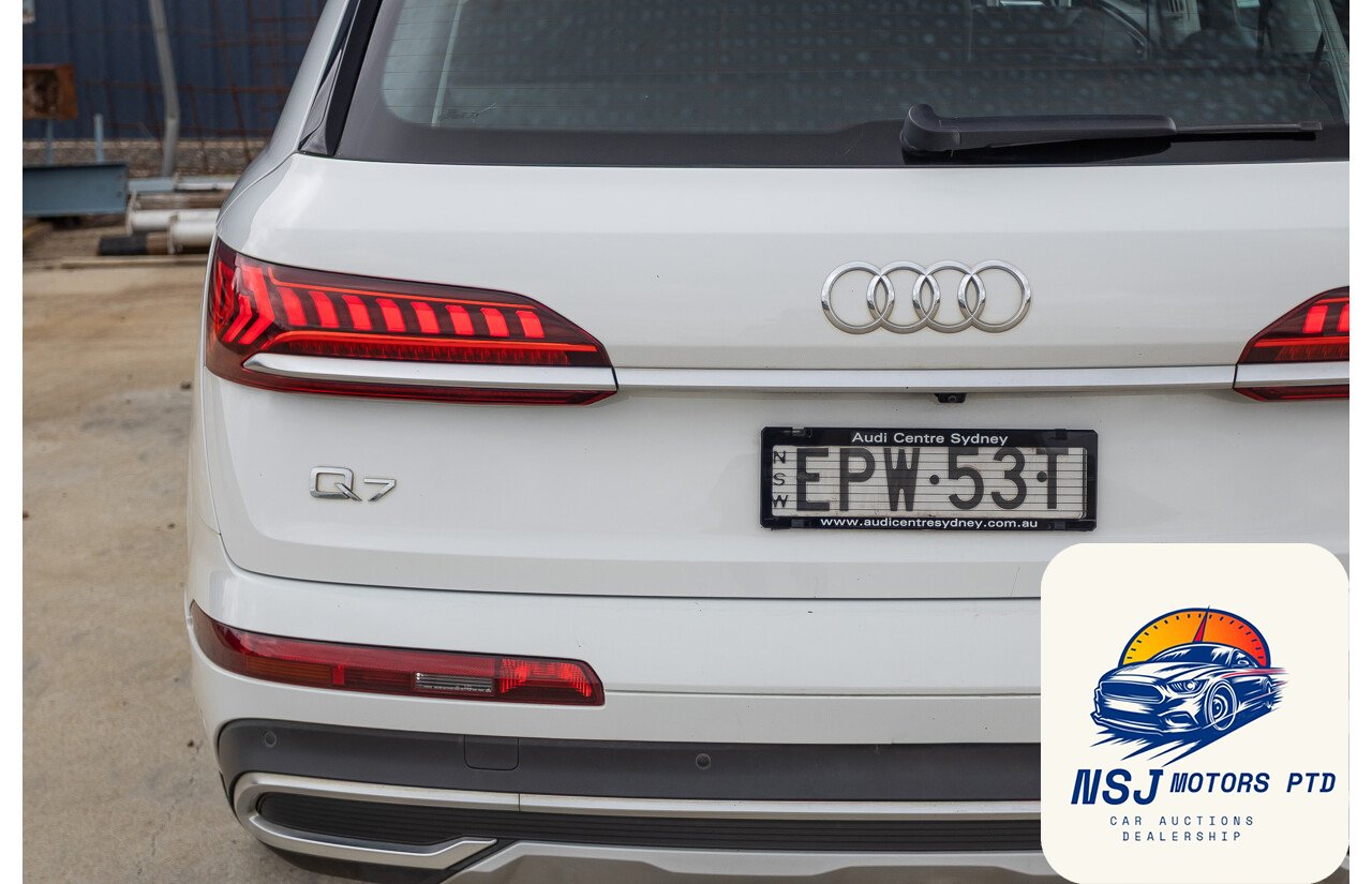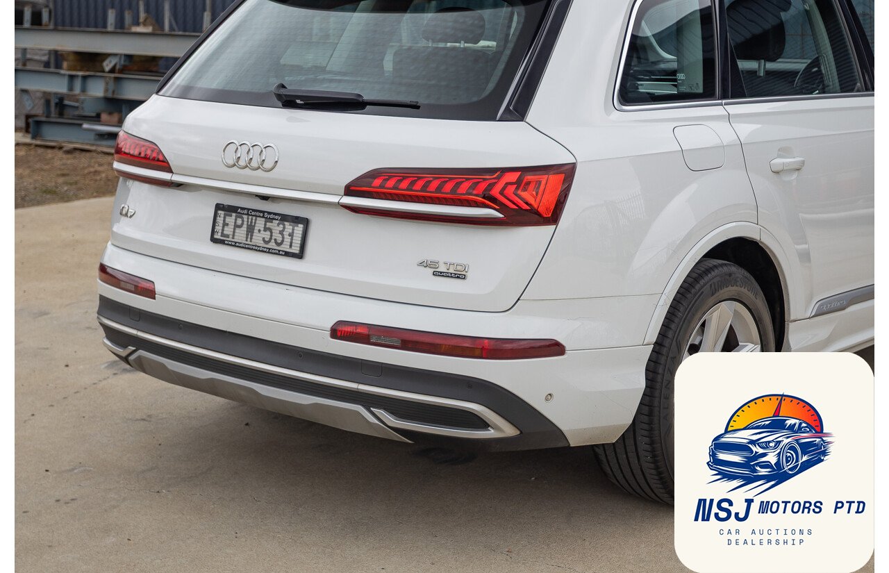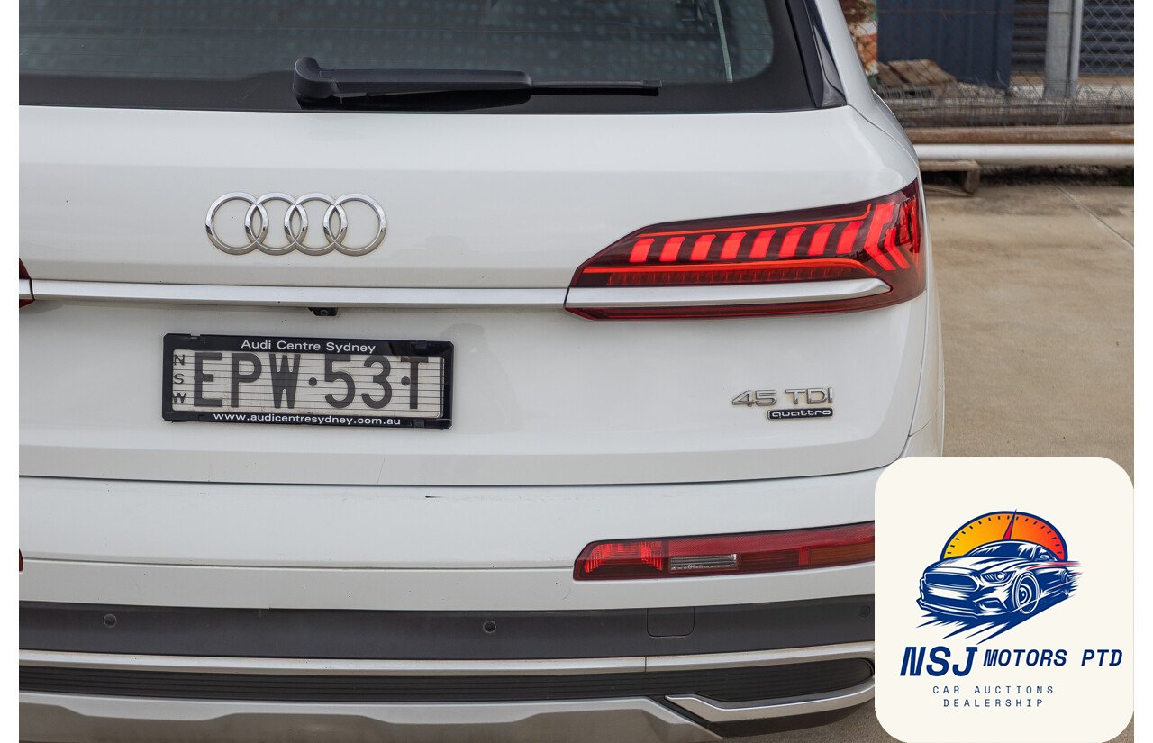 This modern and luxurious feature loaded mild hybrid 7 seater Audi Q7 45 TDI has travelled 163,223ks since new, has current NSW registration until the 4/10/2026 and retains both keys. Some of the many features include Automatic sensing lights, LED headlights, LED daytime running lights, headlight washers, front and rear parking sensors, 19” alloy wheels, roof rails, luggage loading lowering, electronic rear row seats, power tailgate, leather upholstery, heated power front seats with drivers memory, power windows and folding mirrors with memory, multi function leather steering wheel with paddle shift, voice command, Bluetooth and mobile phone connectivity, rain sensing wipers, adaptive cruise control, dual zone climate control, hill decent assist, automatic stop and start, adaptive driving modes, keyless entry and start, automatic parking brake, DAB+ radio, satellite navigation, front, rear and side cameras with 360 satellite view, forward collision alert, blind spot sensor. high and low speed crash avoidance braking, lane departure warning with passive keeping assist and more.