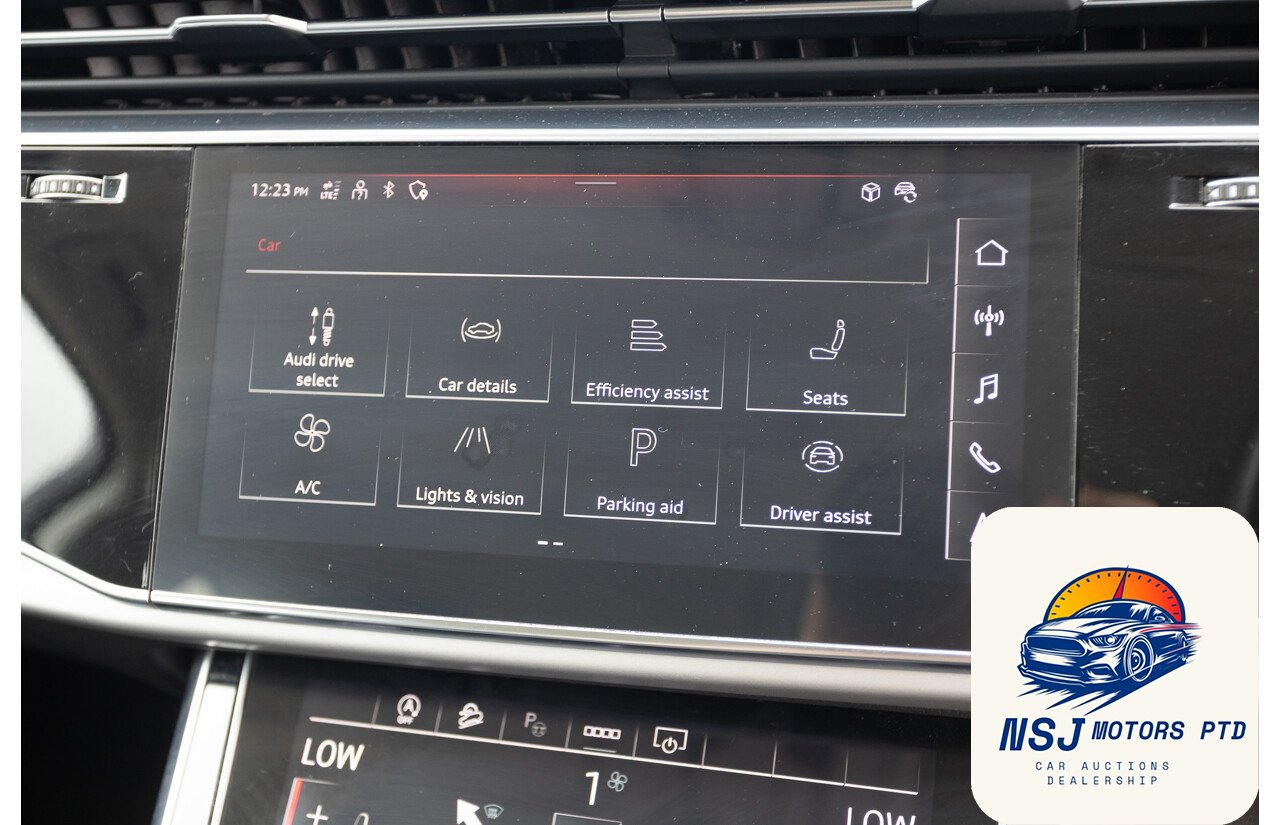 19 Inch Alloy WheelsActive High Beam ControlActive Lane Keeping AssistAdaptive Air SuspensionAdaptive Damping ControlAdaptive Drive Assist with Stop & GoAmbient LightingAndroid AutoAnti-lock BrakingAnti-Slip RegulationAnti-theft Wheel BoltsApple Car PlayAssistance PackAttention AssistAudi Matrix Beam HeadlightsAudi Pre-senseAutomatic Emergency Call (eCall)Automatic Stop/StartAutonomous Emergency BrakingBlack Window SurroundsBlind Spot WarningBody Coloured BumpersBrake AssistCaraokeCargo Cover – ElectricCentre Console LightingClimate Control – 3 ZoneCloth HeadliningCollision Avoidance SystemConnect PlusConvenience KeyCornering LampsCross Traffic Assist – RearCyclist RecognitionDamper Control – VariableDaytime Running Lights – LEDDigital AmplifierDigital Audio Broadcast Radio PlusDigital Instrument ClusterDisplay Screen 12.3 InchDisplay Screen 8.6 InchDoor Handle Courtesy LightsDriver Mode SelectionDual Front Airbags PackageDynamic Turning LightsElectric Power SteeringElectronic Differential LockElectronic Stability ControlElectronic Wheel-selective Torque ControlEngine ImmobiliserEntrance LightingExit Warnings SystemExterior Mirror – Reverse Tilt on Passenger SideExterior Mirrors – Auto DimmingExterior Pack – Gloss BlackExtra USB Socket/sFirst Aid KitFloor Mats – Front & RearFollowing Distance IndicatorFront Centre Armrest – AdjustableFront Footwell LightsGesture ControlHead Airbags – 2nd Row Seats (side)Head Airbags – Front Seats (side)Head RestraintsHeadlight Range AdjustmentHeated Front SeatsHeated Washer JetsInfotainment PackInlaysInstrument Cluster – ConfigurableInterior Lighting PackIntersection Crossing AssistKerb View FunctionKeyless Entry & StartLeather Accented UpholsteryLeather Steering WheelLED IndicatorsLED Matrix HeadlightsLED Position LightsLights on Exterior Door HandlesLoose Wheel DetectionLow Light SensorMulti-function Steering WheelMulti-media InterfaceMulti-media Interface TouchMulti-media System with 10.1 inch Touch ScreenNavigation SystemPaddle Shifters on Steering WheelPark Assist PlusParking Distance Control Front & RearPedestrian RecognitionPower front seat Driver/memoryPower front seatsPower Lumbar Support Front SeatsPower Mirrors With Heated & FoldingPower TailgatePredictive Efficiency AssistRain SensorRear Footwell LightsRear View Mirror – Auto DimmingRemote Locking/UnlockingRoadside Assistance KitRoof Rails – Aluminium FinishSeatbelts – Lap/Sash for All SeatsSeatbelts – Reminder for All SeatsSecurity PackSelf-locking Centre DifferentialSeven Seat InteriorSide Airbags – 2nd Row Seats sideSide Airbags – Front Seats sideSide AssistSmartphone PackSound System with 10 SpeakersStainless Steel Loading Sill ProtectorStyle Pack – ExteriorSubwooferSurround Camera SystemThird Row SeatsTraffic Jam AssistTrailer Hitch PreparationTurn AssistTyre Pressure IndicatorTyre Pressure Loss Warning SystemTyre Repair KitUSB Input SocketVirtual CockpitVoice Recognition SystemWarning TriangleWireless Phone Charge