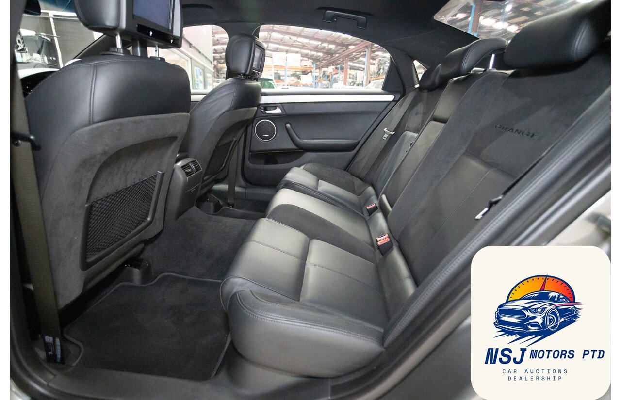 Standard features for the WM series 3 HSV Grange include an 12 speaker sound system with Bose components, rear passenger DVD screens, dual-zone climate control air conditioning, Nappa leather seats, power adjustable front seats, driver’s seat and mirror memory settings, cruise control, front fog lamps, xenon headlights, front and rear parking sensors, leather-wrapped multi-function steering wheel, remote central locking, power windows and heated mirrors, automatically dipping mirrors when reversing, a height and reach adjustable steering wheel, tyre pressure sensors, a trip computer and an immobiliser. As standard, the Grange was also fitted with a limited slip rear differential, performance 4 spot ventilated brakes and an exclusive body kit consisting of more aggressive front bumper, side skirts, rear bumper and deck lid spoiler.
