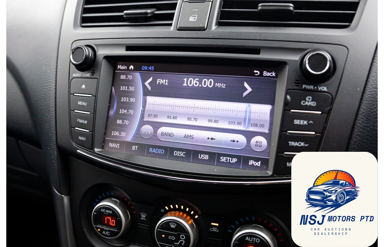12 Volt Power Outlet17 Inch Alloy WheelsAdjustable Steering Wheel – Tilt OnlyAmbient Temperature DisplayAntenna – Roof-mounted Bee-sting typeAnti-lock BrakingAuto Climate Control with Dual Temp ZonesAUX/USB Input SocketBody Coloured Front BumperBrake AssistCarpet Floor CoveringCentral Locking Remote ControlCentre Console Box – Multi-purposeCentre Courtesy/Dome Light/sChild Proof Rear Door LocksChild Seat Anchor PointsChrome Exterior Door HandlesChrome Exterior MirrorsCloth TrimCruise ControlCup Holders – Front SeatsDiff LocksDigital ClockDoor Pockets – Front SeatDriver Foot RestDual Front Airbags PackageDusk Sensing HeadlightsDynamic Stability ControlElectronic Brake Force DistributionEmergency Stop SignalEngine ImmobiliserFog Lights – FrontHalogen HeadlightsHead AirbagsHeadrests – Adjustable on All SeatsHigh Mounted Rear Stop LightHill Descent ControlHill HolderIlluminated – Entry/Exit with Delayed FadeIlluminated Glove Box CompartmentInstrument Panel Light DimmerIntermittent Wipers – VariableLeather Gear KnobLeather Steering WheelLockable Fuel Filler Cap/LidLockable Glove Box CompartmentLow Fuel WarningMap/Reading Lights – FrontMobile Phone ConnectivityMP3 Compatible Audio/CD PlayerMud Flaps – Front & RearMulti-function Control ScreenPower MirrorsPower SteeringPower WindowsRadio CD with 6 SpeakersRain Sensing WipersRear Centre ArmrestRear Window DemisterReversing CameraSatellite NavigationSeatback Pocket – Front Passenger SeatSeatbelts – Height Adjustable Front SeatsSeatbelts – Lap/Sash for All SeatsSeatbelts – Load Limiters Front SeatsSeatbelts – Pre-tensioners Front SeatsSeatbelts – Reminder for Front SeatsSide AirbagsSide Door Impact BeamsSide StepsSpare Wheel – Space Saver/TemporarySteering Wheel-mounted Audio ControlsSunglass HolderTinted WindowsTraction Control SystemTrailer Stability ControlTrip Computer
