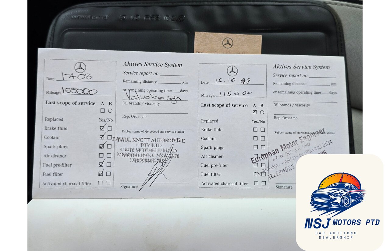 This very well presented example of a rare Australian delivered C43 AMG has travelled 161,956ks since new with full service history, both keys, and current ACT registration until 29/09/2025. A testament to the care by the owner, this C43 presents well in all aspects and is sure to impress collectors and enthusiasts alike. Features include metallic paint, foglights, 17″ AMG wheels, rear parking sensors, power sunroof, rare bi-colour condor leather seats, carbon style trims, power windows and mirrors, heated power front seats, cruise control, electronic stability control, heated washer jets and more.