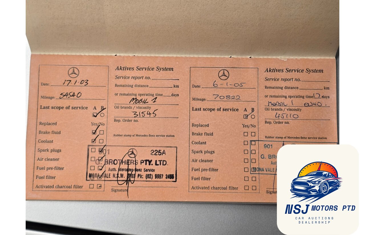 This example of the rare and desirable W210 E55 AMG has travelled an indicated 172,630ks since new with partial logbook history. The E55 has been sitting indoors in a private collection since 2019 and would require some minor work to bring it back to perfect. Features include Xenon headlights, headlight washers, foglights, metallic paint, power sunroof, 18′ Monoblock AMG wheels, Graphite AMG exclusive leather interior, woodgrain trim, power windows and mirrors, heated power front seats with memory, cruise control, dual zone climate control, aftermarket Kenwood head unit (original included), auto dimming mirrors and more.