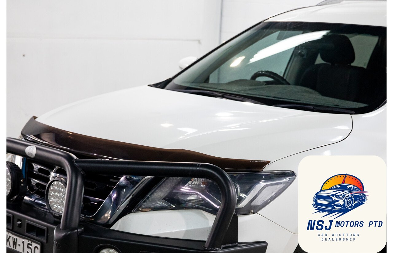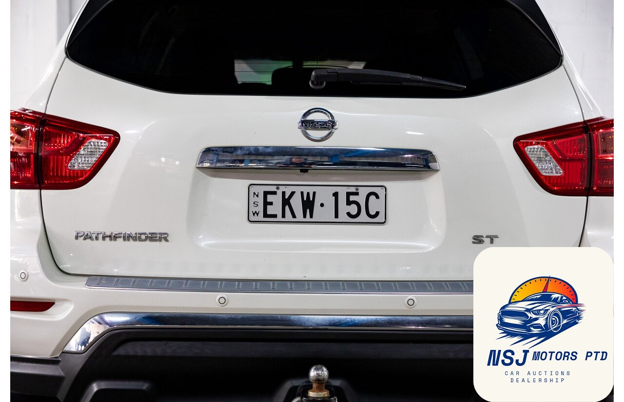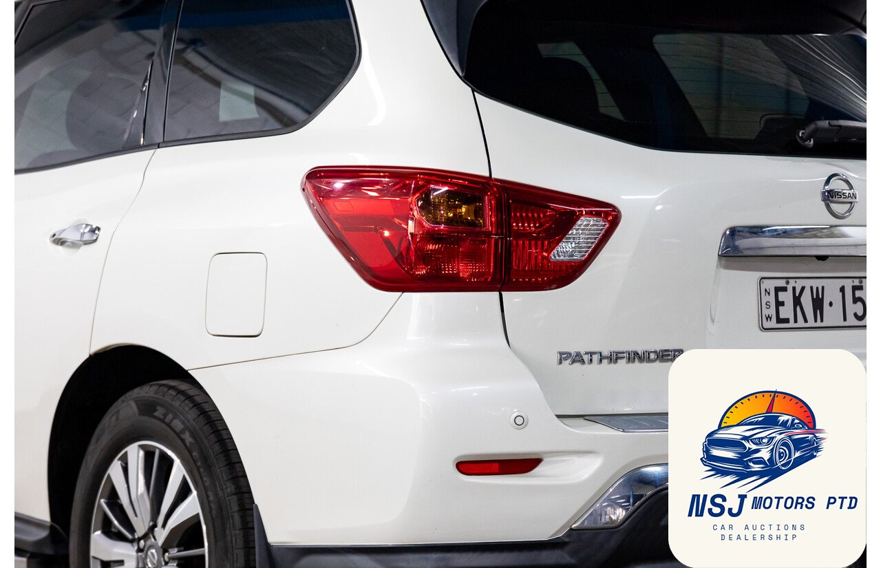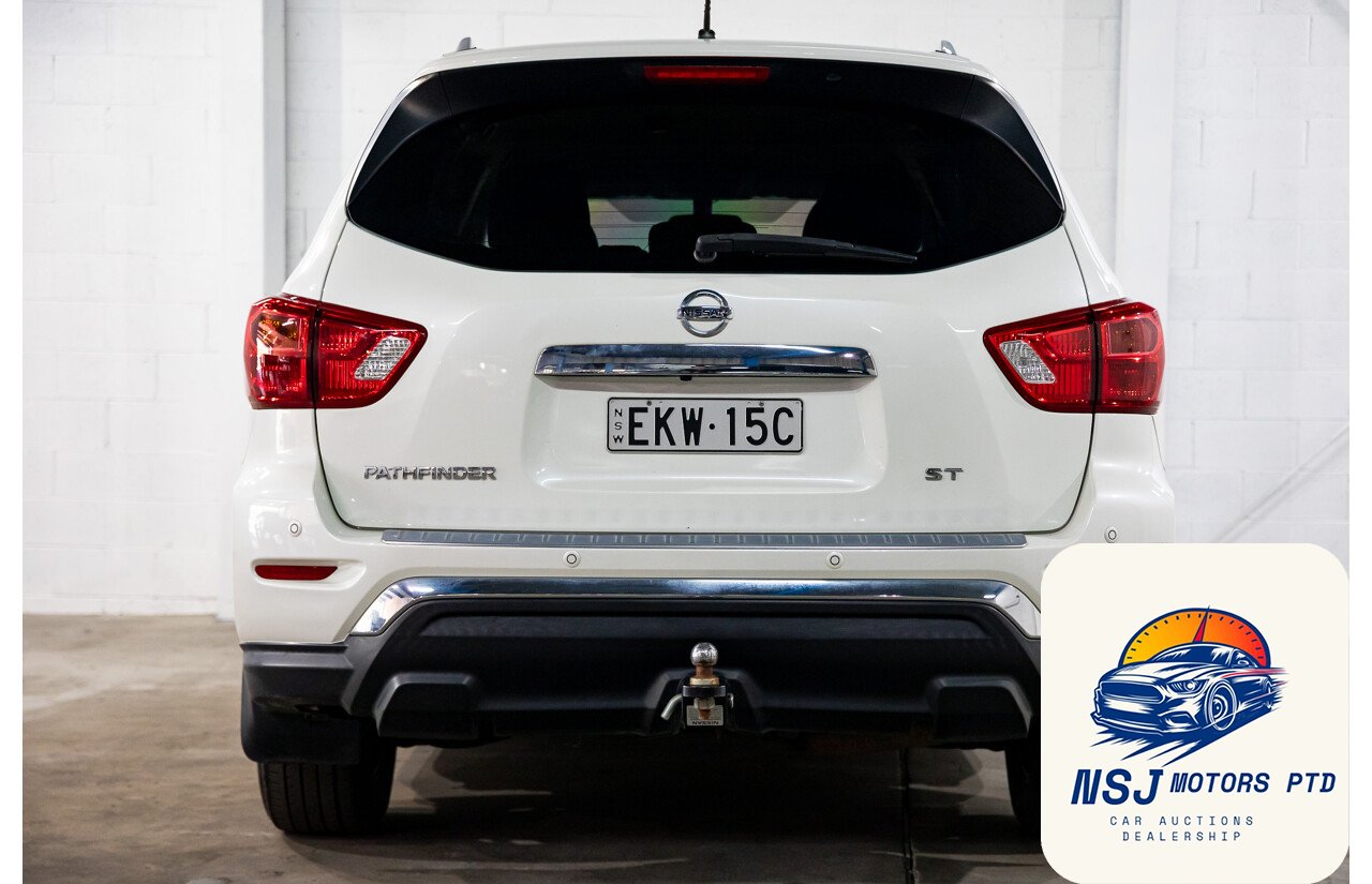 This 3.5L Pathfinder ST has travelled 221,677ks since new, with full service history and retains both remote keys. This spacious seven-seat family SUV features 18″ alloy wheels, bull bar, automatic halogen headlights, LED daytime running lights, LED driving lights, rear parking distance control, heated and folding power mirrors, keyless entry and drive, roof rails, flat fold 3rd row seats, split-fold second-row seats, black cloth upholstery, leather-accented multifunction steering wheel, front and rear dash camera, cruise and distance control, Bluetooth connectivity, voice recognition, multifunction control screen, reverse camera, 6-speaker audio system, CD/DVD stereo, USB and auxiliary inputs, multi-zone automatic climate control, rear air conditioning vents, hill start assist, electronic stability control, traction control, brake assist, forward collision alert, blind spot sensor, rear cross traffic alert, crash avoidance with brake assist and many more.