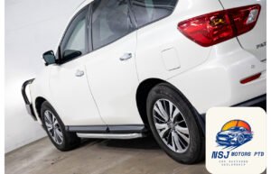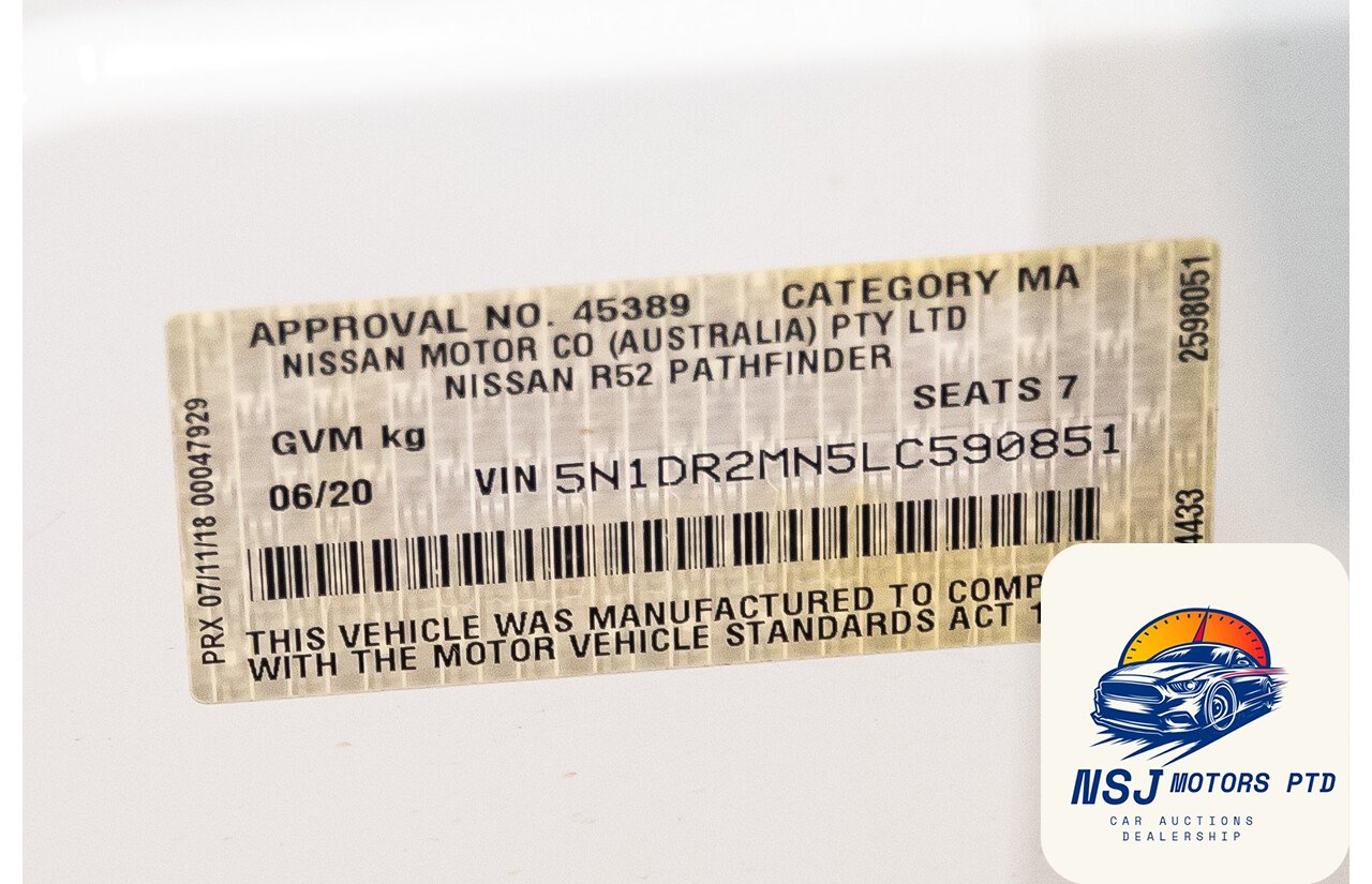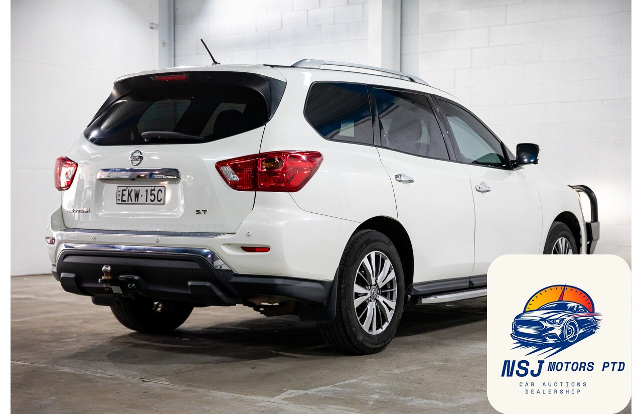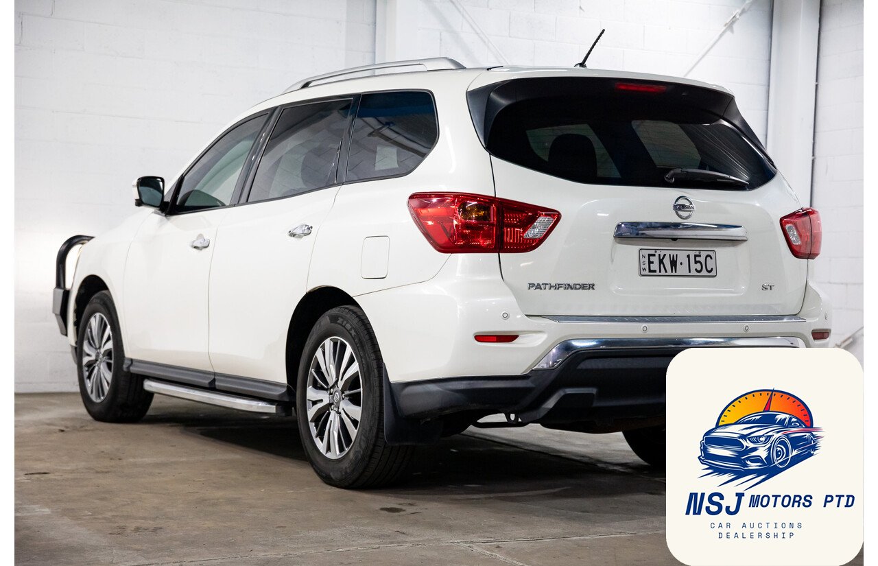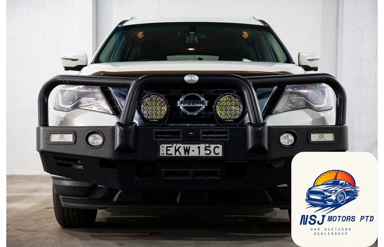 This 3.5L Pathfinder ST has travelled 221,677ks since new, with full service history and retains both remote keys. This spacious seven-seat family SUV features 18″ alloy wheels, bull bar, automatic halogen headlights, LED daytime running lights, LED driving lights, rear parking distance control, heated and folding power mirrors, keyless entry and drive, roof rails, flat fold 3rd row seats, split-fold second-row seats, black cloth upholstery, leather-accented multifunction steering wheel, front and rear dash camera, cruise and distance control, Bluetooth connectivity, voice recognition, multifunction control screen, reverse camera, 6-speaker audio system, CD/DVD stereo, USB and auxiliary inputs, multi-zone automatic climate control, rear air conditioning vents, hill start assist, electronic stability control, traction control, brake assist, forward collision alert, blind spot sensor, rear cross traffic alert, crash avoidance with brake assist and many more.
