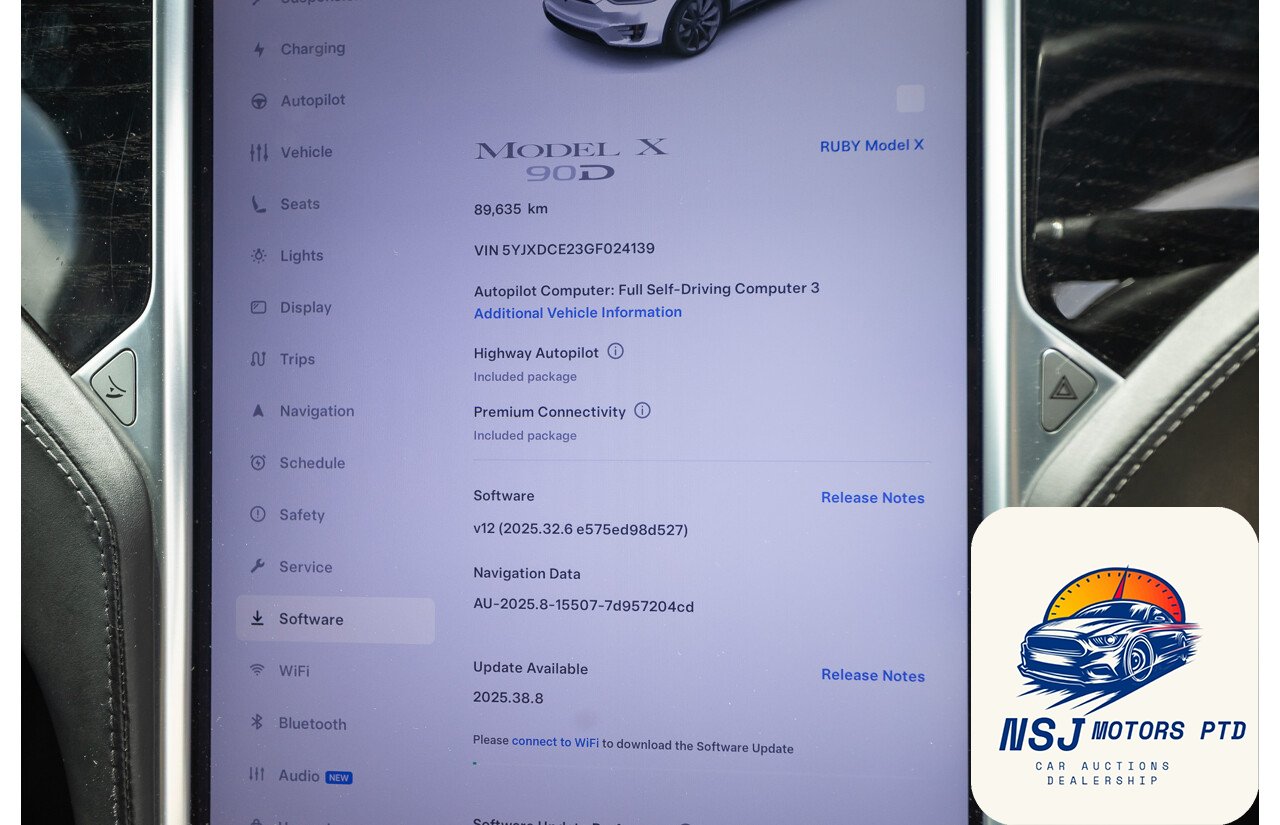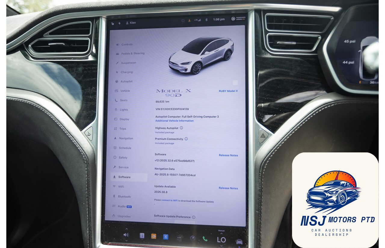 This well presented and optioned luxurious Model X 90D has traveled only 89,632ks since new with both remote keys and Online Tesla history. Some of the many many features include active automatic LED headlights, LED foglights, front and rear parking sensors, pearl paint, 22″ Onyx wheels, gullwing rear doors, adjustable air suspension, active spoiler, automatic tailgate, third row seating, black leather seats, suede roof lining, power front seats, multi function steering wheel, voice command, mobile phone connectivity, adaptive cruise control, full self driving 3, tyre pressure monitoring, satellite navigation, climate control, sentry mode with side cameras, panoramic roof and much much more.