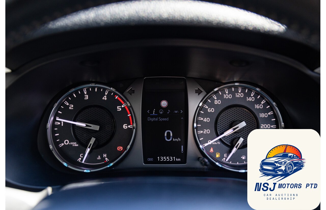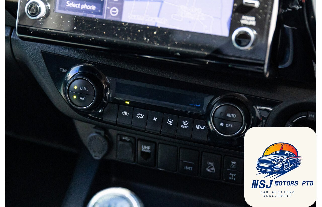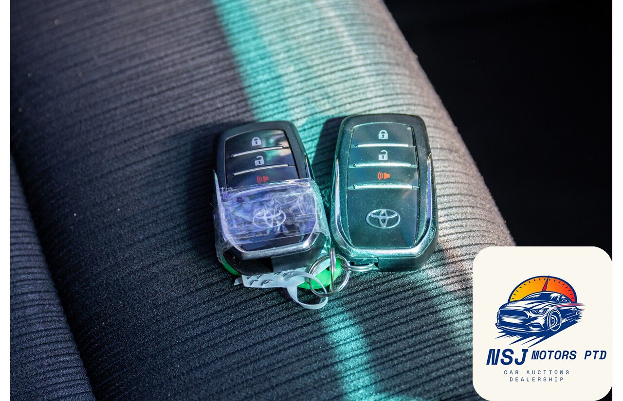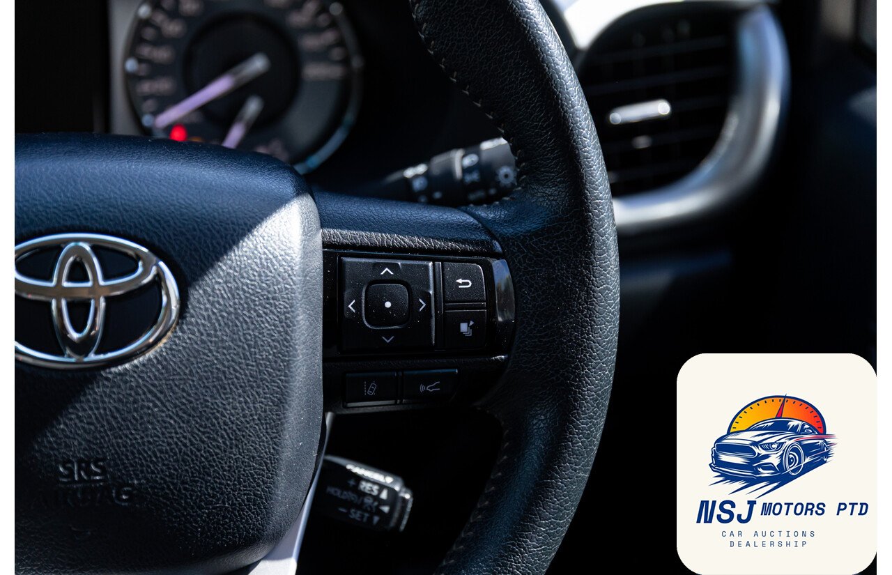 12 Volt Power Outlet18 Inch Alloy Wheels295mm Rear Brakes319mm Front BrakesActive Traction ControlAdjustable Front Seats – ManualAdjustable Steering Wheel – Tilt & TelescopicAirbag – Knee DriverAlarm System/Remote Anti TheftAlloy Sports BarAndroid AutoAntenna – Roof-mounted Shark Fin typeAnti-lock BrakingApple Car PlayAutomatic Collision NotificationBluetooth ConnectivityBottle Holders – Front SeatsBrake AssistCarpet Floor CoveringCentral Locking Remote ControlCentre Console Box – Multi-purposeCentre Courtesy/Dome Light/sChild Seat – ISOFIX Anchorage SystemChild Seat Anchor PointsChrome Exterior Door HandlesChrome Exterior MirrorsChrome Front GrilleChrome Interior Door HandlesCloth TrimConnect App ServicesCruise ControlCup Holders – Front SeatsDaytime Running Lights – LEDDigital Audio Broadcast RadioDigital ClockDisplay Screen 4.2 InchDrive Start ControlDriver Mode SelectionDual Front Airbags PackageDusk Sensing HeadlightsElectronic Brake Force DistributionElectronic Stability ProgramEmergency Call ButtonEmergency Stop SignalEngine ImmobiliserFog Lights – FrontGrab Handles – Front & RearHead AirbagsHeadrests – Adjustable on All SeatsHigh-Speed Active Cruise ControlHill Descent ControlHill HolderIntermittent Wipers – VariableKeyless Entry & DriveLane Departure WarningLeather Gear KnobLeather Steering WheelLED HeadlightsLockable Glove Box CompartmentMulti Information DisplayMulti-function Control ScreenMulti-media System with 8 inch Touch ScreenMyToyotaOver-the-air-updatesParking Distance Control Front & RearPedestrian RecognitionPower Mirrors With Indicators & FoldingPower SteeringPower WindowsPre-collision SystemsRadio AM/FMRadio CD with 6 SpeakersRear Centre ArmrestRear Privacy GlassRemote ServicesReversing CameraSatellite NavigationSchool Zone Speed DetectionSeatback Pockets – Front SeatsSeatbelts – Height Adjustable Front SeatsSeatbelts – Lap/Sash for All SeatsSeatbelts – Load Limiters Front SeatsSeatbelts – Pre-tensioners Front SeatsSeatbelts – Reminder for All SeatsSide AirbagsSpare Wheel – Full Size Alloy WheelSplit Fold Rear SeatStart/Stop ButtonSteering Wheel-mounted Audio ControlsToyota Connected ServicesToyota Safety SenseTraction Control SystemTraffic Sign RecognitionTrailer Stability ControlTrip ComputerUSB Input SocketVariable Flow Control SteeringVehicle TrackerVentilated Front Disc BrakesVoice Recognition System