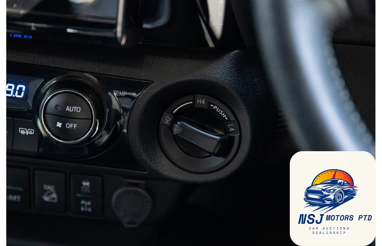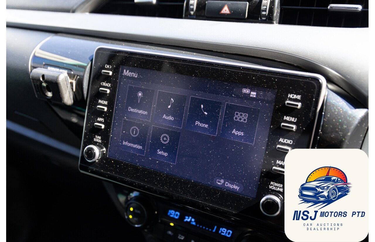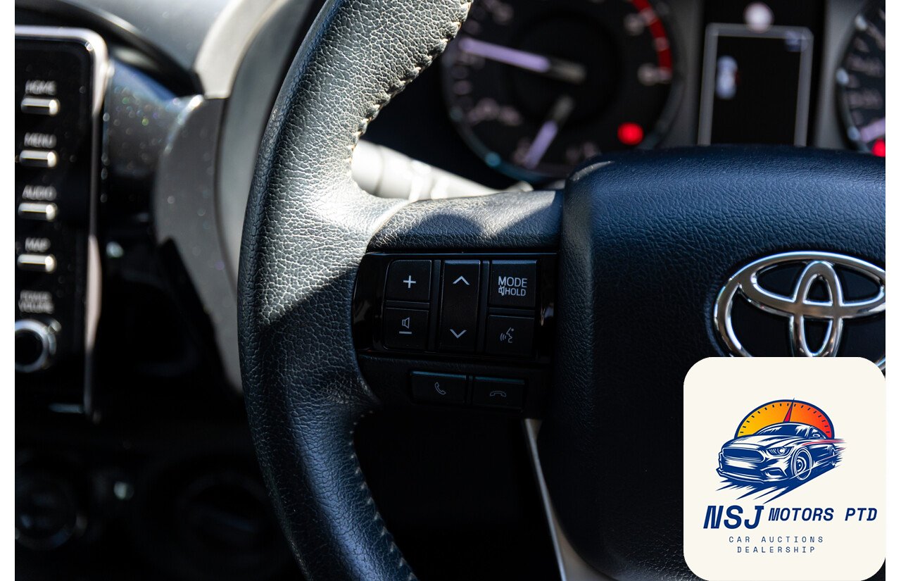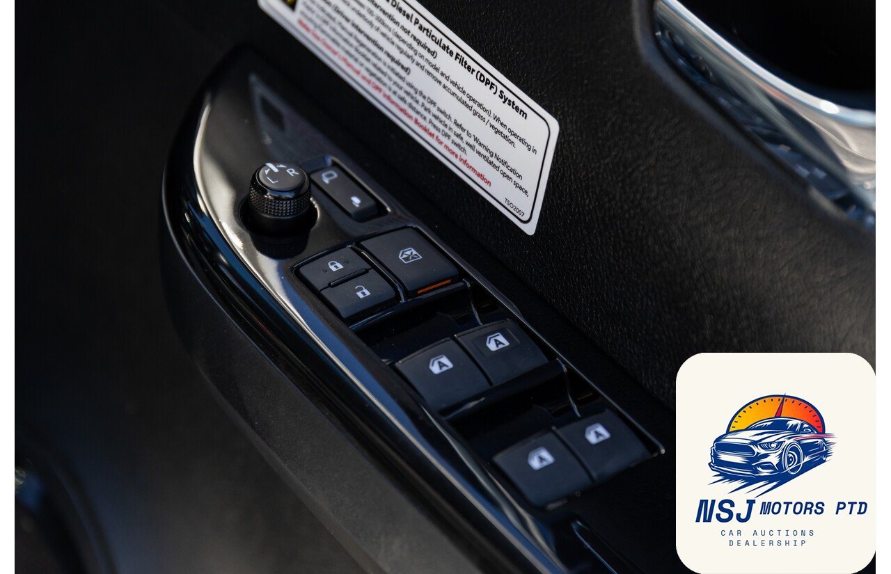 12 Volt Power Outlet18 Inch Alloy Wheels295mm Rear Brakes319mm Front BrakesActive Traction ControlAdjustable Front Seats – ManualAdjustable Steering Wheel – Tilt & TelescopicAirbag – Knee DriverAlarm System/Remote Anti TheftAlloy Sports BarAndroid AutoAntenna – Roof-mounted Shark Fin typeAnti-lock BrakingApple Car PlayAutomatic Collision NotificationBluetooth ConnectivityBottle Holders – Front SeatsBrake AssistCarpet Floor CoveringCentral Locking Remote ControlCentre Console Box – Multi-purposeCentre Courtesy/Dome Light/sChild Seat – ISOFIX Anchorage SystemChild Seat Anchor PointsChrome Exterior Door HandlesChrome Exterior MirrorsChrome Front GrilleChrome Interior Door HandlesCloth TrimConnect App ServicesCruise ControlCup Holders – Front SeatsDaytime Running Lights – LEDDigital Audio Broadcast RadioDigital ClockDisplay Screen 4.2 InchDrive Start ControlDriver Mode SelectionDual Front Airbags PackageDusk Sensing HeadlightsElectronic Brake Force DistributionElectronic Stability ProgramEmergency Call ButtonEmergency Stop SignalEngine ImmobiliserFog Lights – FrontGrab Handles – Front & RearHead AirbagsHeadrests – Adjustable on All SeatsHigh-Speed Active Cruise ControlHill Descent ControlHill HolderIntermittent Wipers – VariableKeyless Entry & DriveLane Departure WarningLeather Gear KnobLeather Steering WheelLED HeadlightsLockable Glove Box CompartmentMulti Information DisplayMulti-function Control ScreenMulti-media System with 8 inch Touch ScreenMyToyotaOver-the-air-updatesParking Distance Control Front & RearPedestrian RecognitionPower Mirrors With Indicators & FoldingPower SteeringPower WindowsPre-collision SystemsRadio AM/FMRadio CD with 6 SpeakersRear Centre ArmrestRear Privacy GlassRemote ServicesReversing CameraSatellite NavigationSchool Zone Speed DetectionSeatback Pockets – Front SeatsSeatbelts – Height Adjustable Front SeatsSeatbelts – Lap/Sash for All SeatsSeatbelts – Load Limiters Front SeatsSeatbelts – Pre-tensioners Front SeatsSeatbelts – Reminder for All SeatsSide AirbagsSpare Wheel – Full Size Alloy WheelSplit Fold Rear SeatStart/Stop ButtonSteering Wheel-mounted Audio ControlsToyota Connected ServicesToyota Safety SenseTraction Control SystemTraffic Sign RecognitionTrailer Stability ControlTrip ComputerUSB Input SocketVariable Flow Control SteeringVehicle TrackerVentilated Front Disc BrakesVoice Recognition System