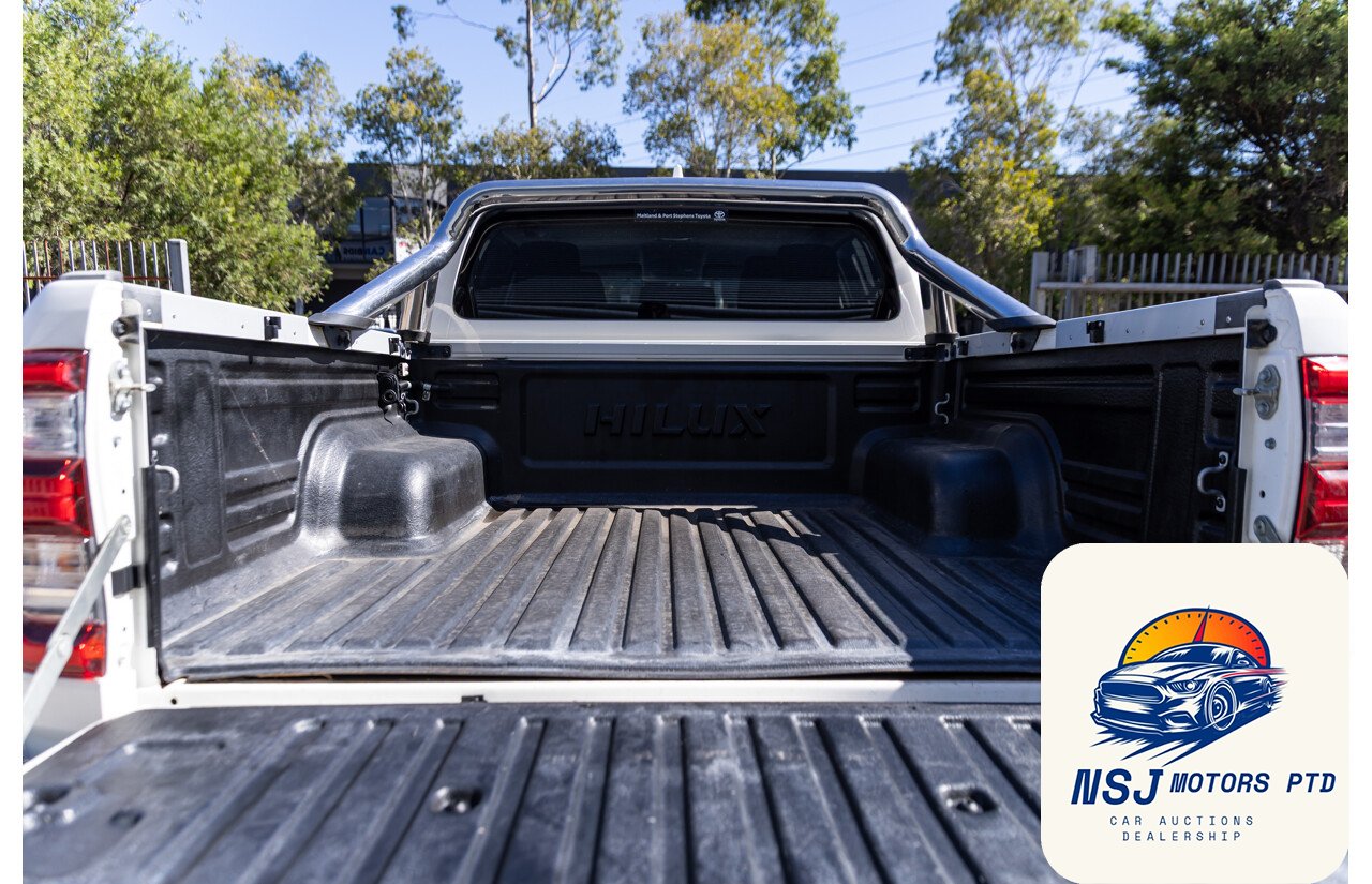 This modern well presented 2.8L turbo diesel Hilux SR5 dual cab has travelled 135,531ks since new, retains both remote keys and has current NSW registration until 06/03/2026. Features include 18″ alloy wheels, automatic LED headlights, LED daytime running lights, LED fog lights, keyless entry and drive, window tinting, Tuff 4.5 post bull bar paired with tuff double bushrails and side step, dual battery, RedArc battery controller, Axis UHF aerial, alloy sports bar, black cloth upholstery, multifunction steering wheel, 5 speed dual range manual transmission including 4WD low, voice recognition, distance and cruise control, road sign recognition, Bluetooth connectivity, multifunction control screen, reverse camera, DAB radio, Apple CarPlay, Android Auto, aux and USB inputs, icy cold air conditioning, crash avoidance with brake assist, pedestrian avoidance with brake assist, trailer sway assist, hill holder, lane departure warning, speed zone recognition, active assist lane keeping, forward collision alert, alarm system, seven airbags and more.