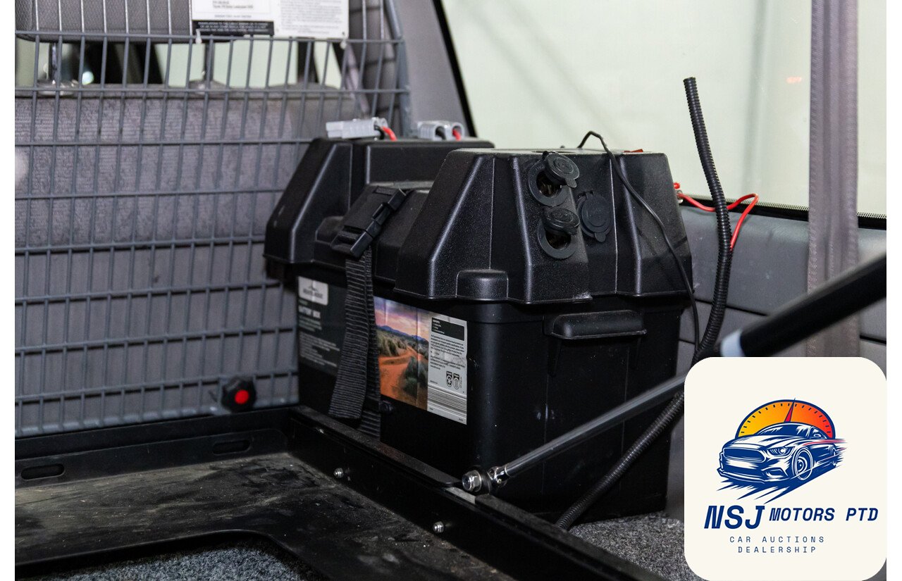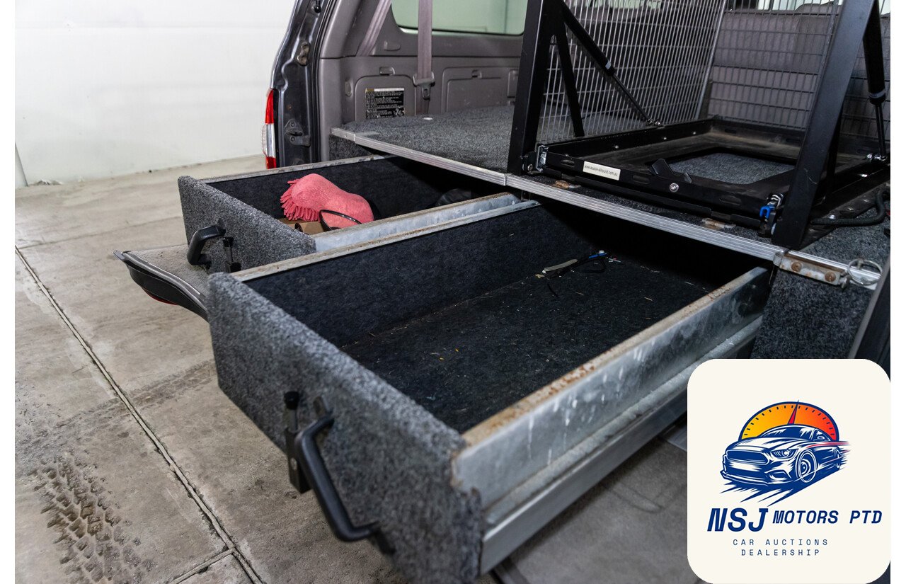 Aftermarket AerialAftermarket LightbarAftermarket Spot lightsAftermarket TowbarARB BullbarGarman Navigation UnitGME TX1300 UHFKenwood HeadunitPassenger Side Rail step UpPull Out DrawsReverse CameraSliding Out Fridge HolderTJM Roof BasketTriple Battery Setup