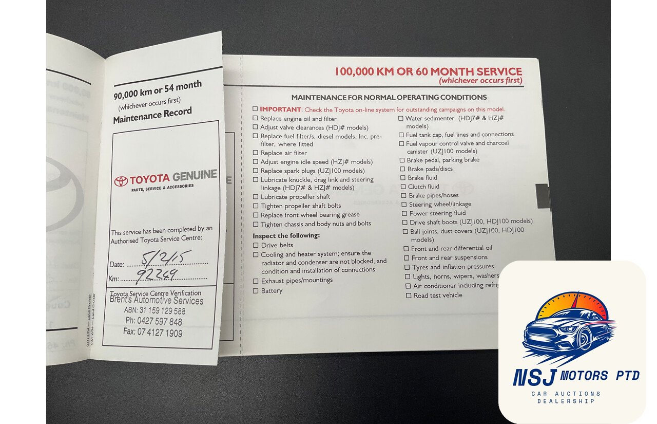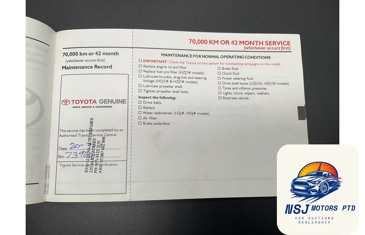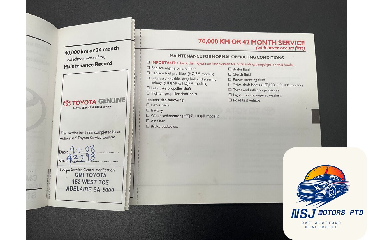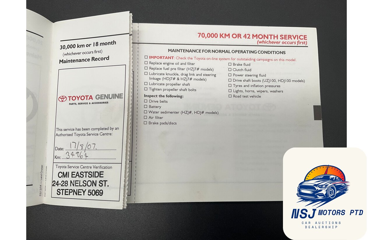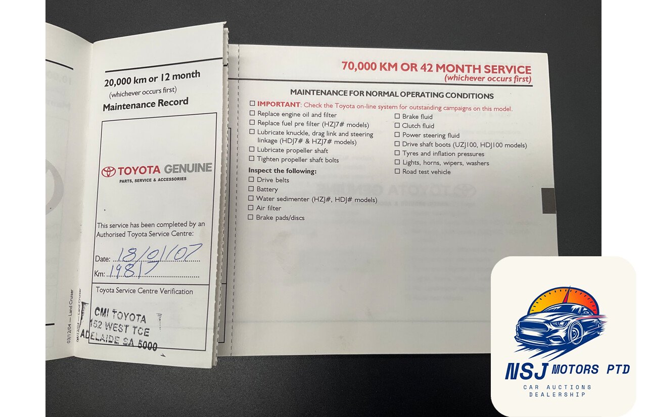 This powerful and desirable 100 Series 4.2L turbo diesel Landcruiser GXL has travelled 196,007ks since new with partial service history, retains both keys and remote fobs and has current NSW registration until 17/02/2026. Features of this well fitted 4×4 include 16″ steel wheels, ventilated brakes front and rear, triple battery, limited slip diff, ARB bullbar, driving lights, LED driving light, aerial, snorkel, TJM roof basket, rear pull out draws, folding out fridge holder, remote central locking, power mirrors, side steps with passenger step up, split fold 2nd row seats, spilt tail gate, grey cloth upholstery, idle up control, UHF, aftermarket Kenwood multifunction control screen, reverse camera, satellite navigation, Android Auto, Apple Carplay, USB input, 6 speaker sound system, power windows, icy cold air conditioning and more.