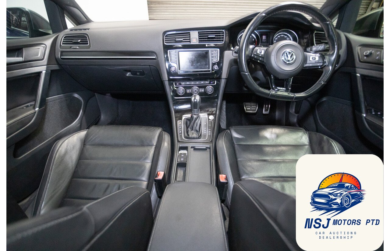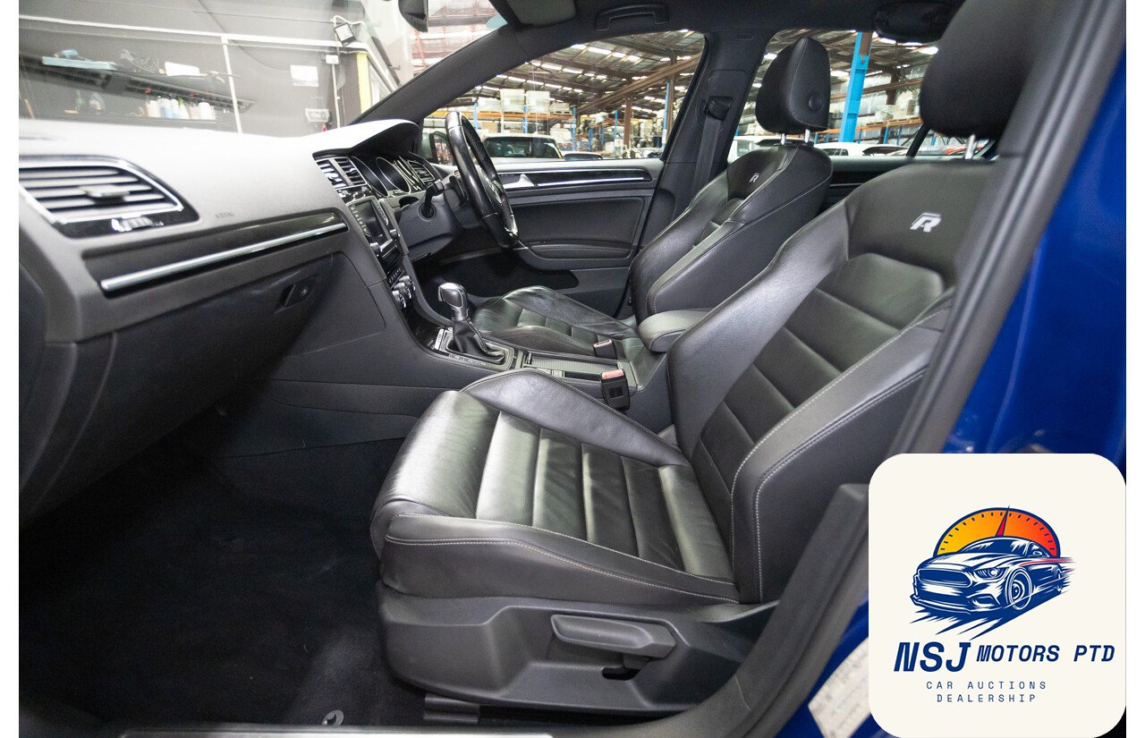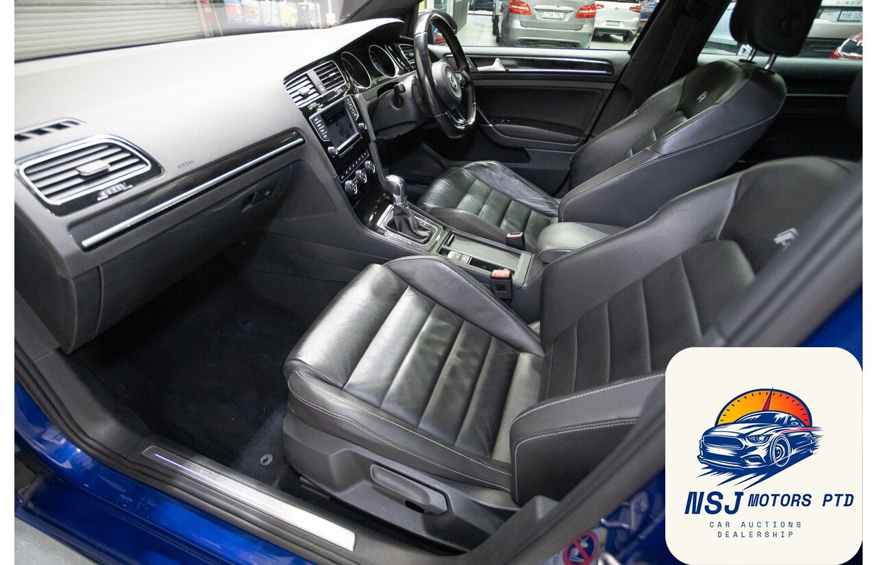 This powerful, popular and well presented AWD Volkswagen Golf R has travelled 124,558ks since new and has full logbook history. Some of the many features include Automatic sensing lights, bi-xenon headlights, LED daytime running lights, headlight washers, front and rear parking sensors, 19” alloy wheels, black leather upholstery, power windows and mirrors, power sunroof, multi function leather steering wheel with paddle shift, cruise control, voice command, Bluetooth and mobile phone connectivity, rain sensing wipers, dual zone climate control, heated front seats, push to start, adaptive driving modes, automatic stop and start, automatic parking brake, reverse camera, satellite navigation, launch control and much more.