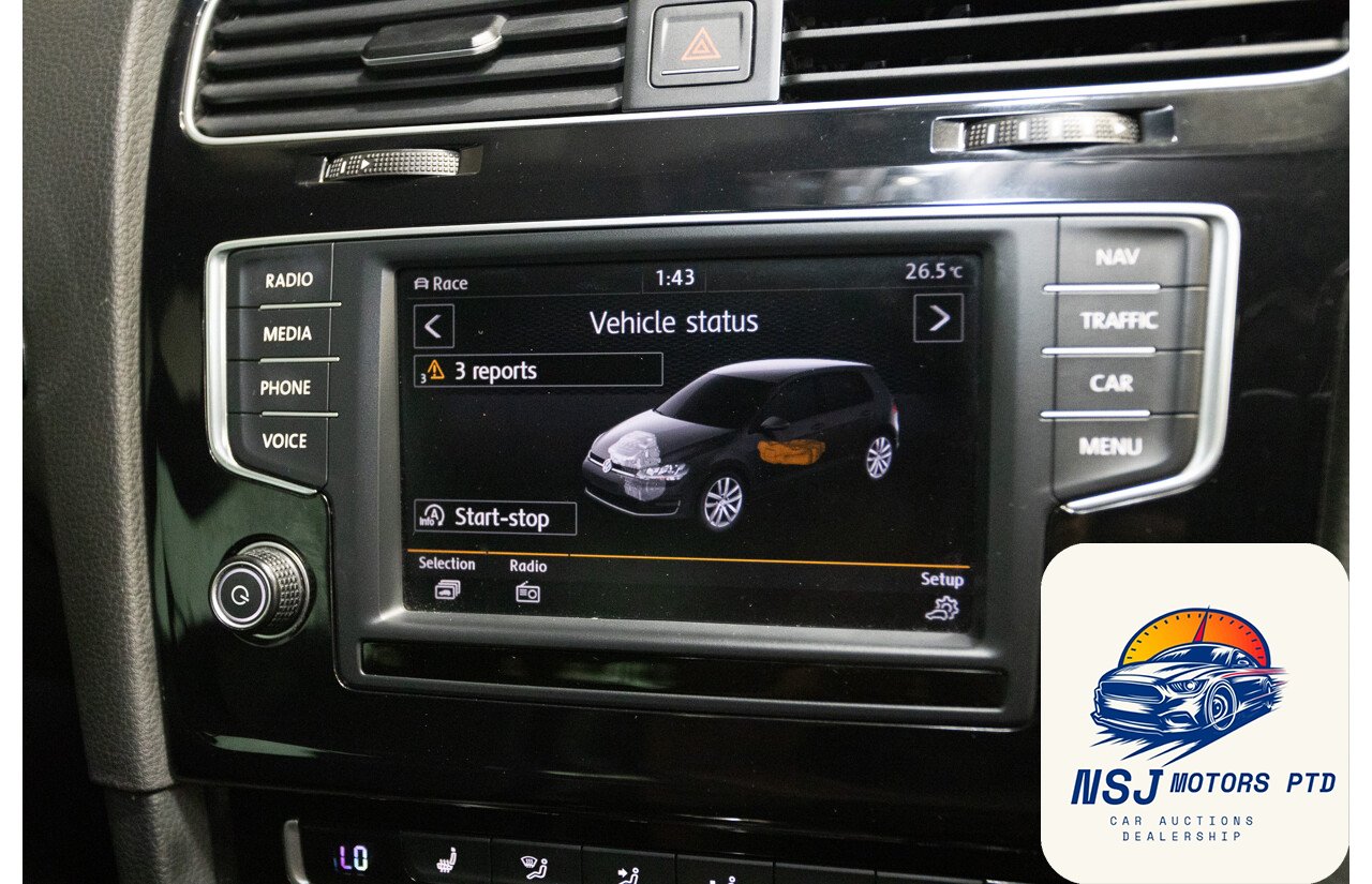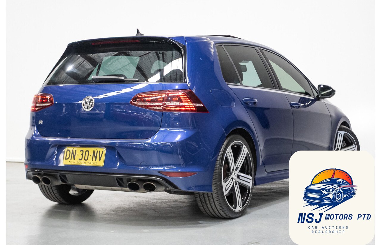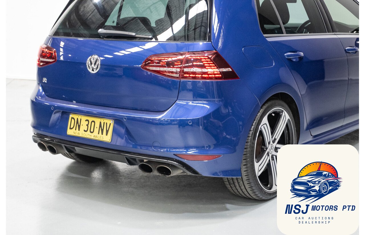 This powerful, popular and well presented AWD Volkswagen Golf R has travelled 124,558ks since new and has full logbook history. Some of the many features include Automatic sensing lights, bi-xenon headlights, LED daytime running lights, headlight washers, front and rear parking sensors, 19” alloy wheels, black leather upholstery, power windows and mirrors, power sunroof, multi function leather steering wheel with paddle shift, cruise control, voice command, Bluetooth and mobile phone connectivity, rain sensing wipers, dual zone climate control, heated front seats, push to start, adaptive driving modes, automatic stop and start, automatic parking brake, reverse camera, satellite navigation, launch control and much more.